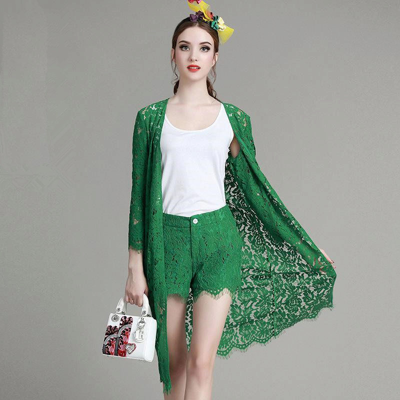 A thin cardigan with 3/4 sleeves or sleeves, complete with a light tank top and short shorts, creates a beautiful summer ensemble.