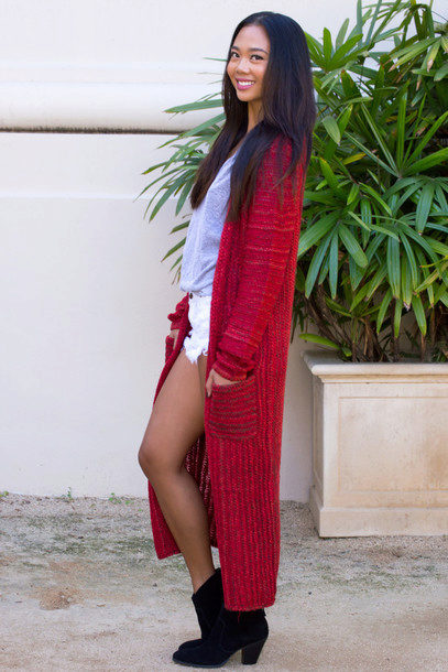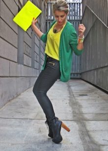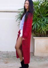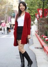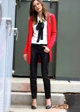 A red cardigan will liven up a boring everyday look, especially if it is effective, it will look with leather clothing.