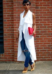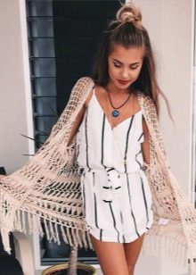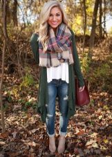In the summer you should prefer a light flying cardigan made of cotton, lace or chiffon. It can be supplemented with fringe, embroidery, various suede or leather inserts.