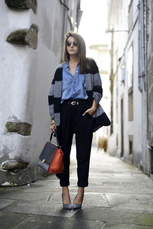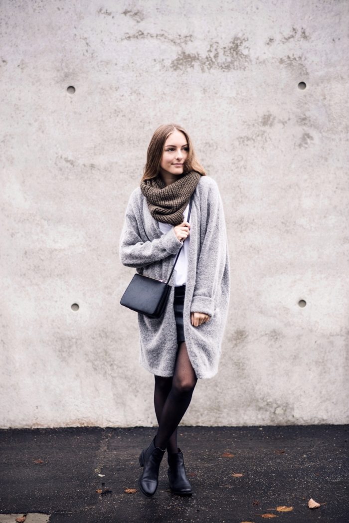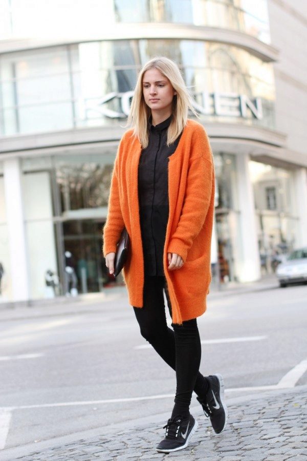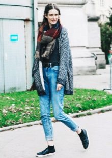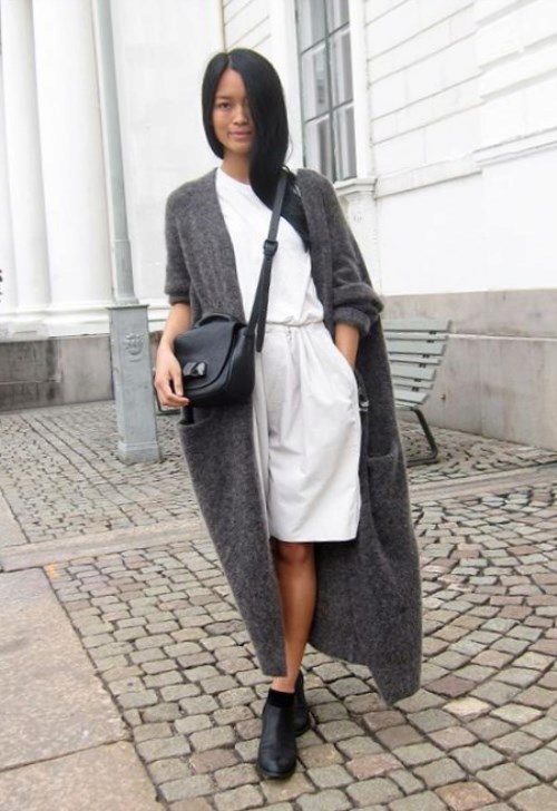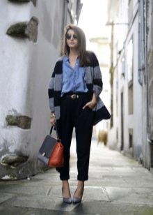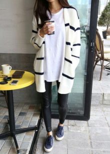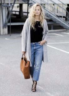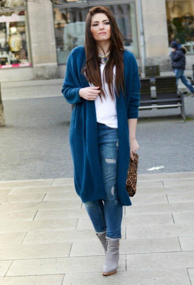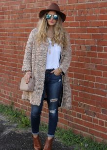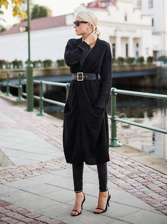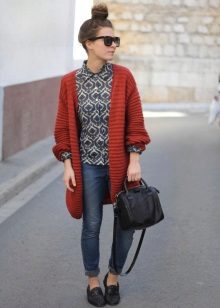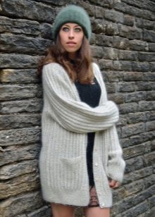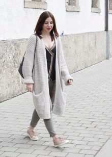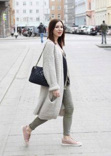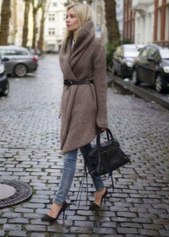 If necessary, you can emphasize the waist with a belt. But this technique is suitable for thin light cardigans, you should not use it for oversized models.