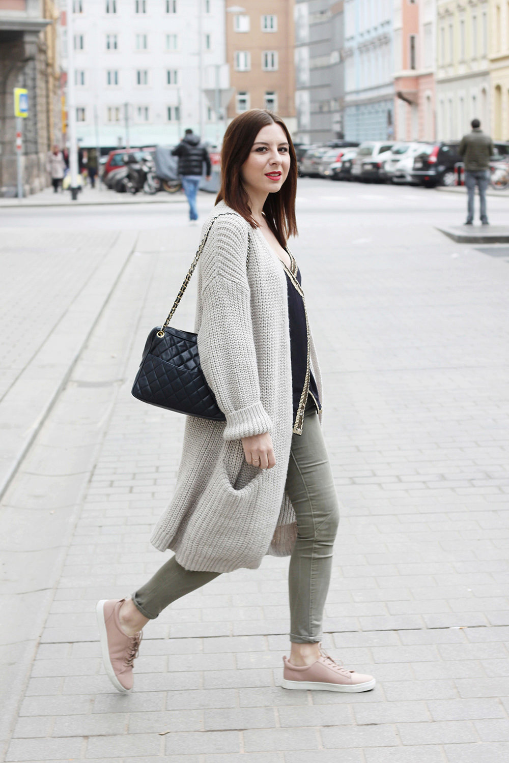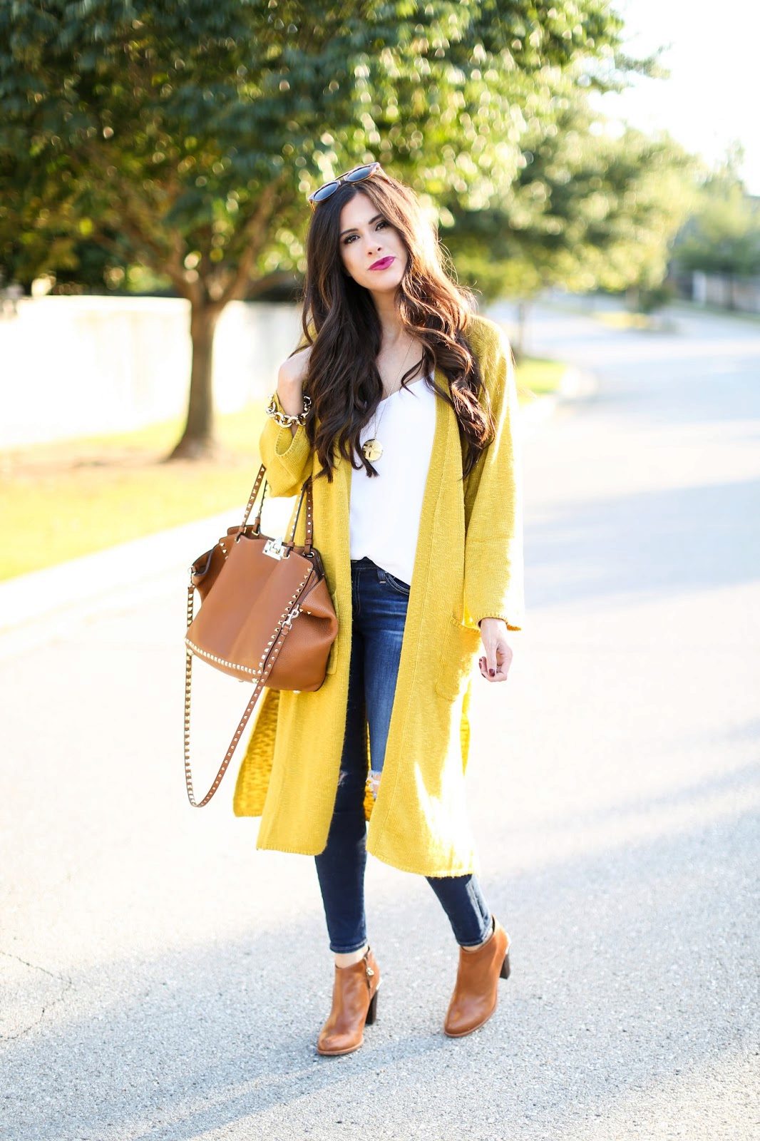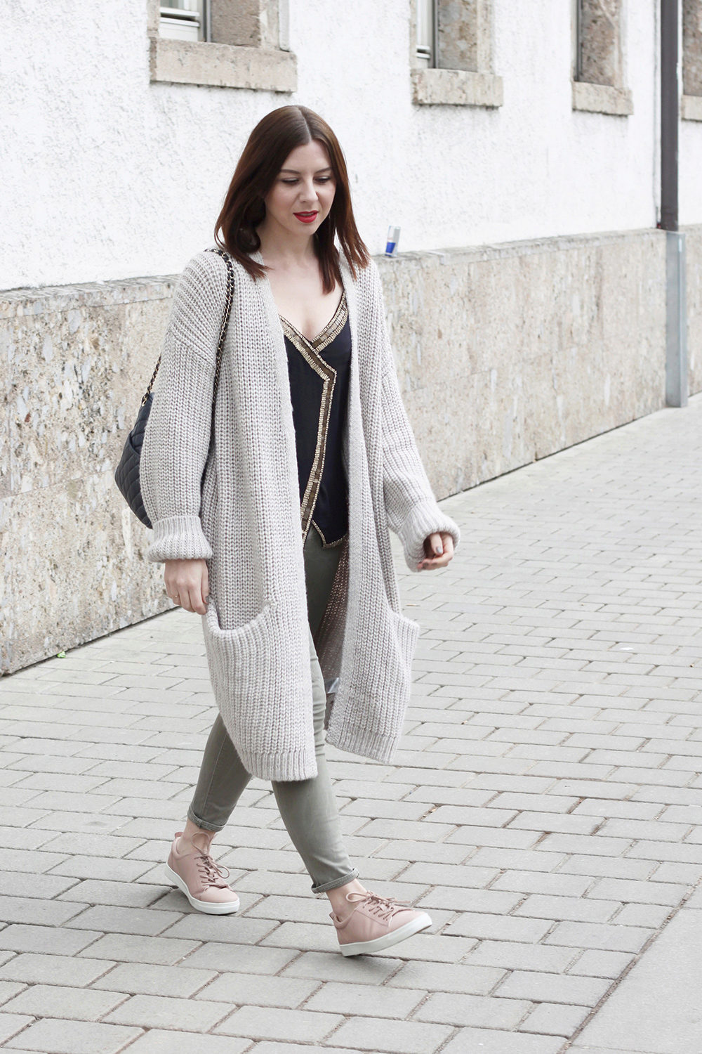 If necessary, you can emphasize the waist with a belt. But this technique is suitable for thin light cardigans, you should not use it for oversized models.