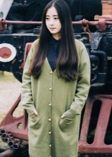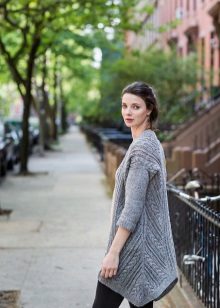 Modern cardigans have moved away a little from this frame, now they can be either with buttons or without them, they may not have pockets, and their shape can vary. Often the length of the cardigan comes to mid-thigh, but it can be both shorter and longer. Therefore, today's cardigans can replace a jacket, jacket or even a coat.