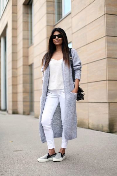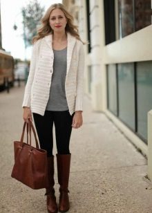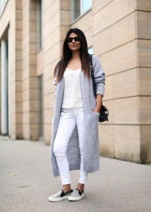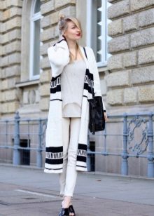 In the summer, in the company to a white cardigan, it is worth choosing pastel and bright shades, and in the fall or winter it is better to give preference to the saturated, muffled color scale. In other matters, the white color is successfully combined with any shades, so there is practically no risk of making a mistake.