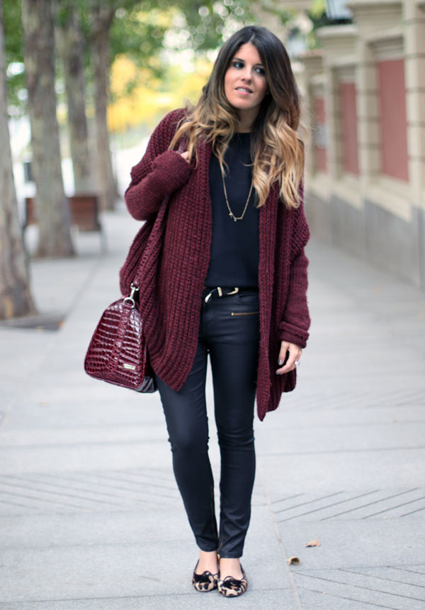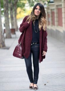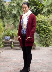 Also, he will easily complement the daily or evening look, becoming an ornament of your image. Prefer burgundy cardigan in the cold season, when you want to make the image cozy and comfortable.
