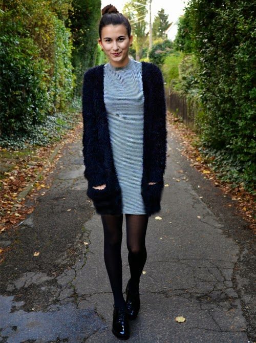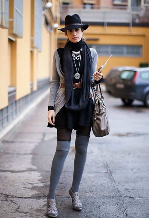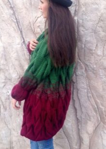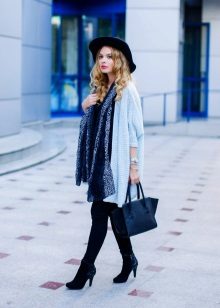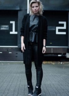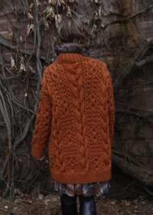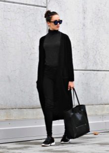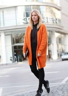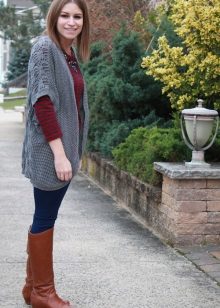 The model of dense knitting will be good in the deep autumn, because it can be worn instead of outerwear. Try to mix in the images of light and dark tones, so as not to look too gloomy. Especially well it will complement the bright, shiny outfits, make look calm and sophisticated.