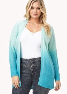 Also popular are cardigans made in the ombre technique.. It involves a smooth transition from one color to another. The ombre cardigan looks very stylish and spectacular, especially this technique is often used to create three-dimensional models connected in the lalo technique.