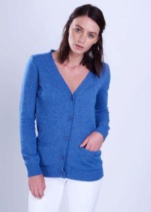 Modern classic cardigan is a knitted jacket with a number of buttons.. It necessarily has no collar, but there are patch pockets. True, in modern models these distinctive features are not necessarily present.