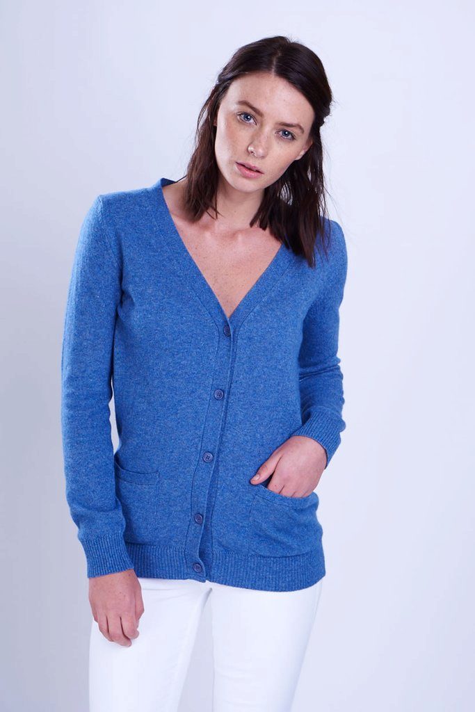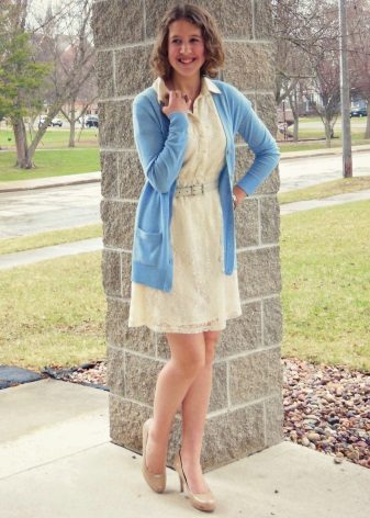 A blue cardigan is capable of effectively complementing a top or blouse, this is a special piece of clothing that will complement many images. Since blue is close to neutral colors, it goes well with both cold and warm shades..
