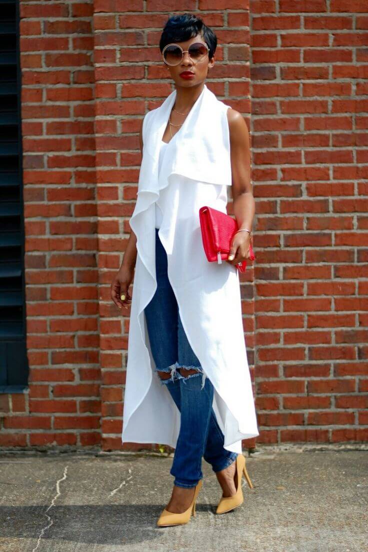 The white cardigan is versatile, it will make any look fresh and multi-faceted.. Like the black cardigan, white will fit into the business look, complement the festive and casual look.