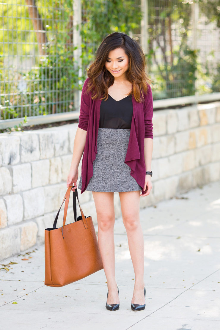 Burgundy is an elegant and noble shade that demonstrates your solidity and self-confidence. Therefore, a burgundy cardigan will perfectly fit into a business image if you need to show your “iron grip”.