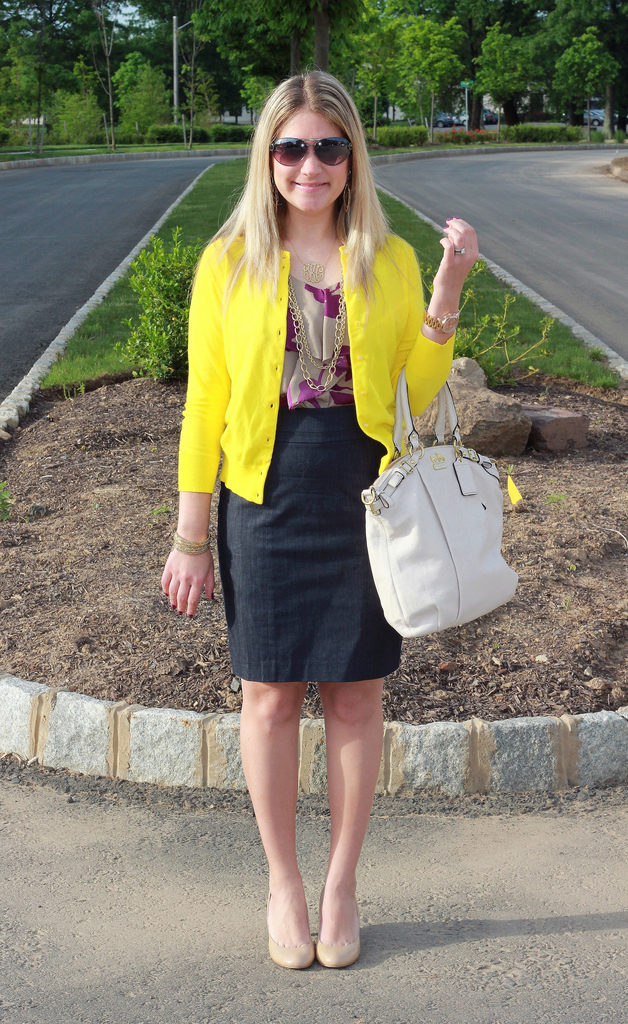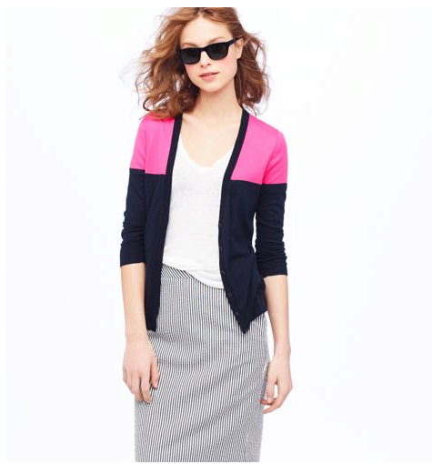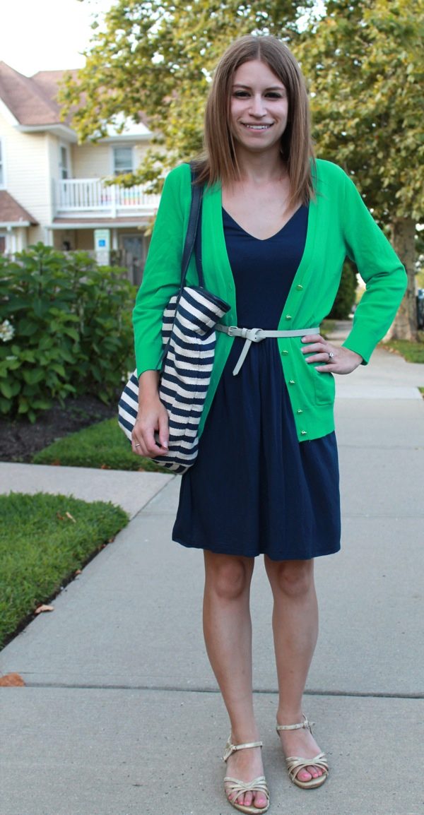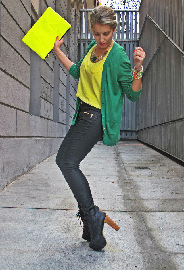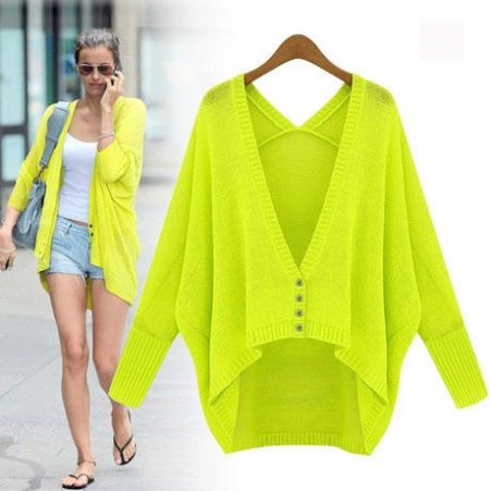 In the summer, add bright colors, wearing a light green cardigan with yellow, pink or orange clothes..