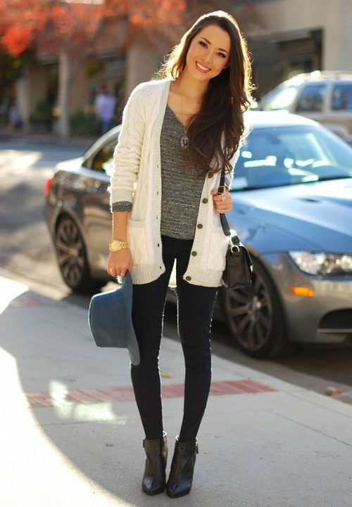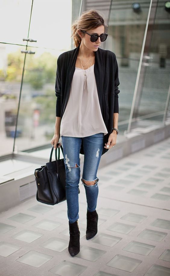 Black cardigans and jeans and simple t-shirts and t-shirts will look great in casual looks.