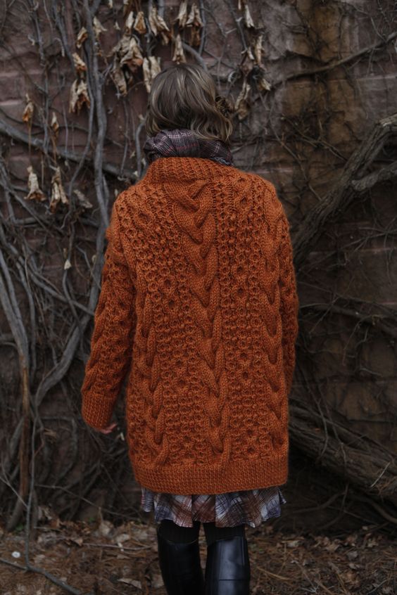 A volumetric warm cardigan with braids can easily replace a raincoat or coat. It is simply indispensable in the autumn wardrobe! The braid pattern adds elegance to the image, making it sophisticated and stylish.