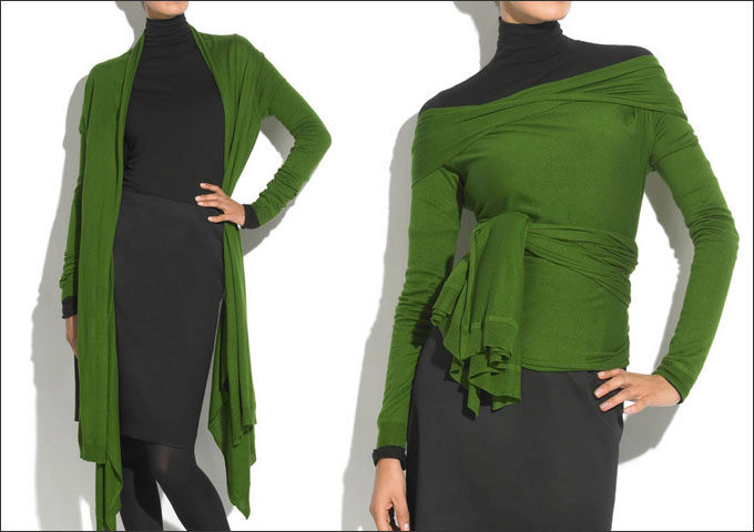 The transforming cardigan can be draped every day in a new way, each time getting a new unusual look.