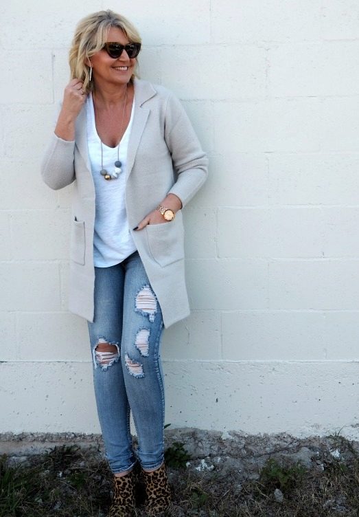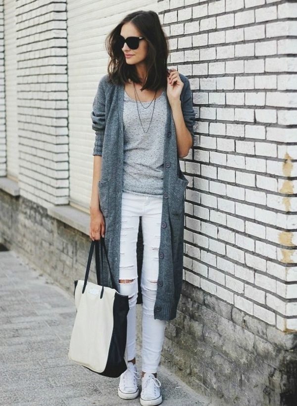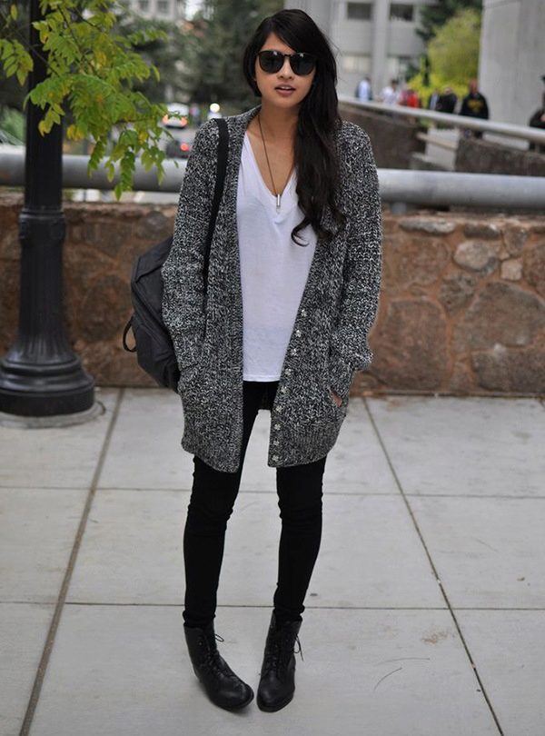 For visiting entertainment events, a cardigan is a very comfortable type of clothing that can be included in almost any ensemble. It will look great with jeans and shorts, even if their length is shorter than the cardigan itself. When combined with leggings, you should prefer high-heeled shoes.