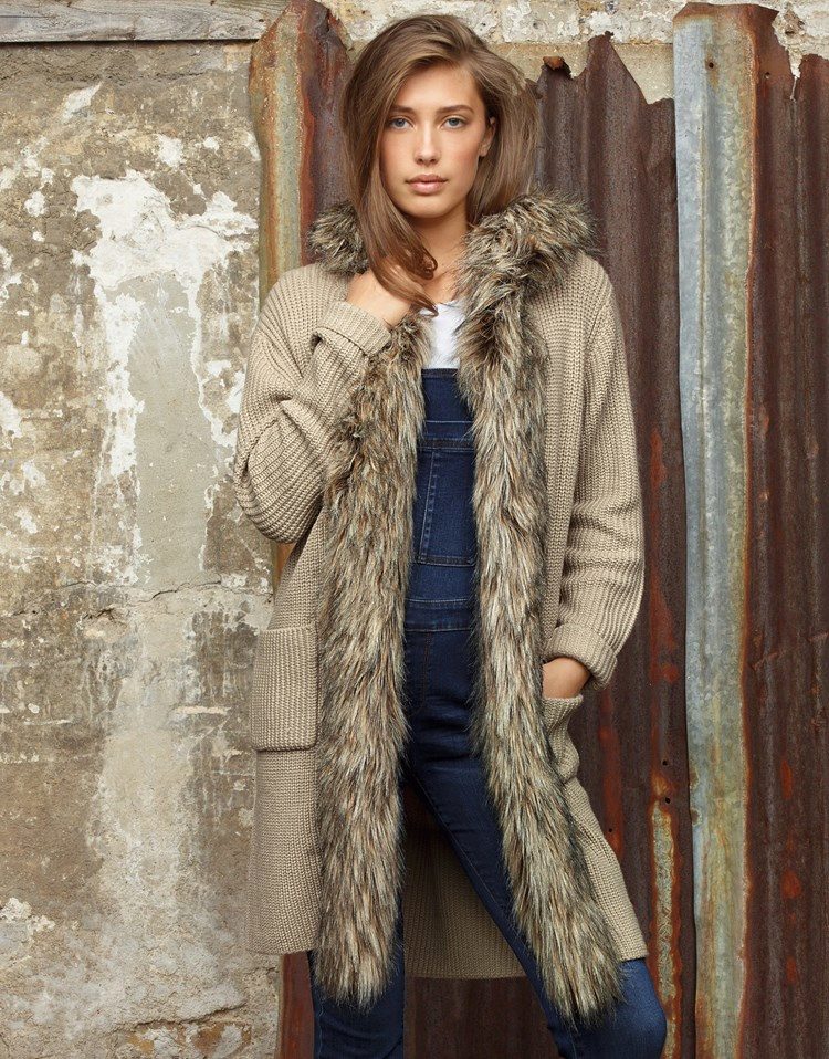 Models with fur trim are suitable for cold evenings when you want warmth and comfort. They come with a hood and a collar. The choice of fur depends on the model - if the cardigan itself is bulky due to the binding, the fur is selected with a short nap, for example, a mink. And if the model is made of warm, but thin fabric, then volume fur will be appropriate - an elegant silver fox, a warm raccoon or a practical arctic fox.