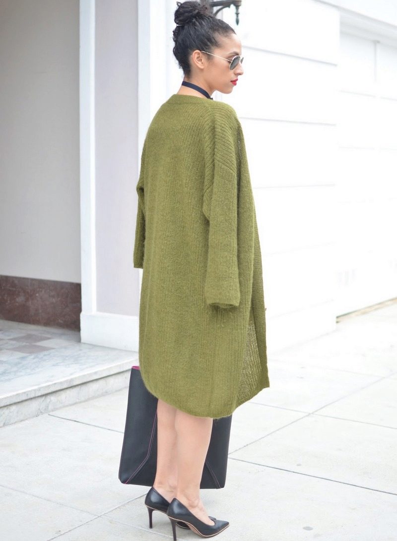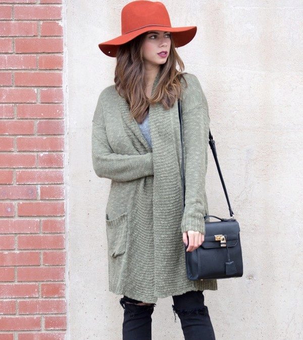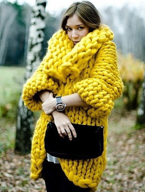 Warm cardigans of bright colors are also not uncommon. Models are gaining popularity, the color of which against the background of gray autumn streets will be beneficial for you to stand out from the crowd - mint, orange, heavenly, green. Such colors with the right combination with the rest of the ensemble will give your image individuality and unique charm.