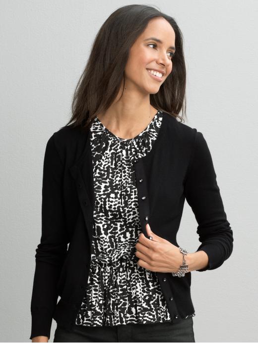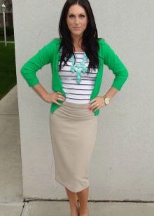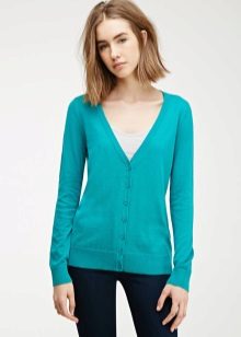 If you want to stand out, choose a cardigan of deep blue or navy blue.. It will perfectly emphasize the figure and give depth to your image.