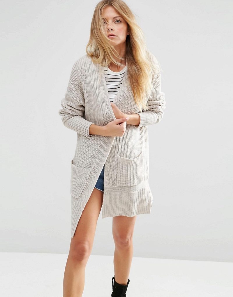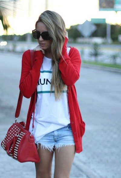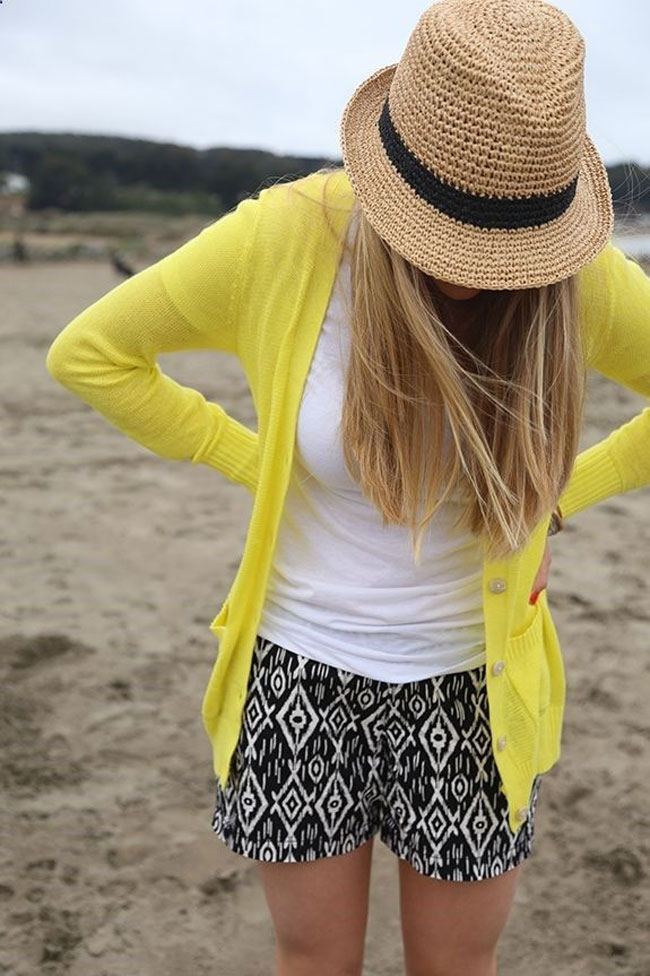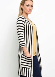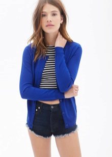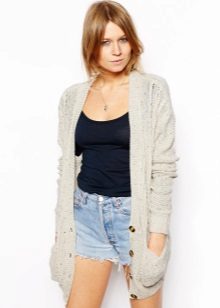 In summer, you can wear a cardigan made of fine knitwear, which will complement the image consisting of shorts and a tank top or t-shirt.. It will also complement a light summer airy dress.