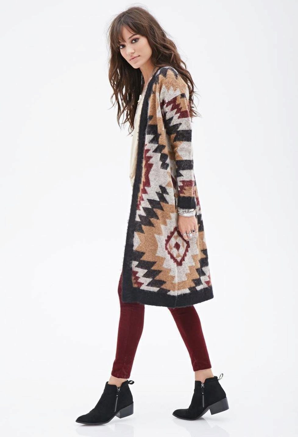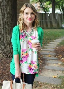 Also pay attention to the geometric and fantasy patterns, different vegetation. Printed cardigans will enliven any, even the most boring image.