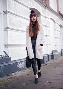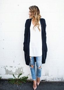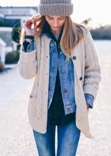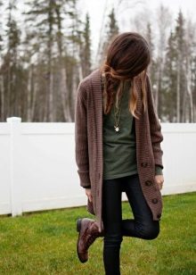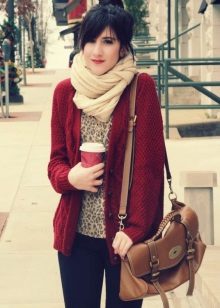 In the off-season cardigan will be a good addition to a t-shirt, shirt or turtleneck. You can wear it with tight pants, jeans, leggings or pencil skirt.