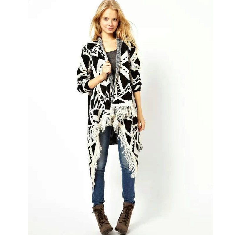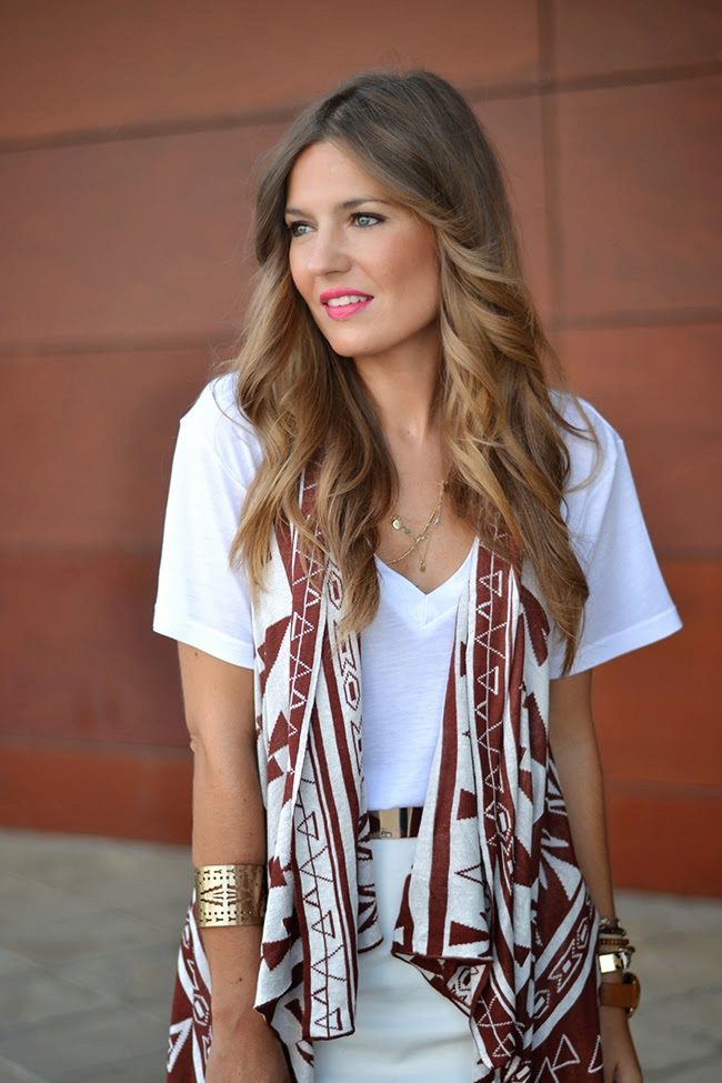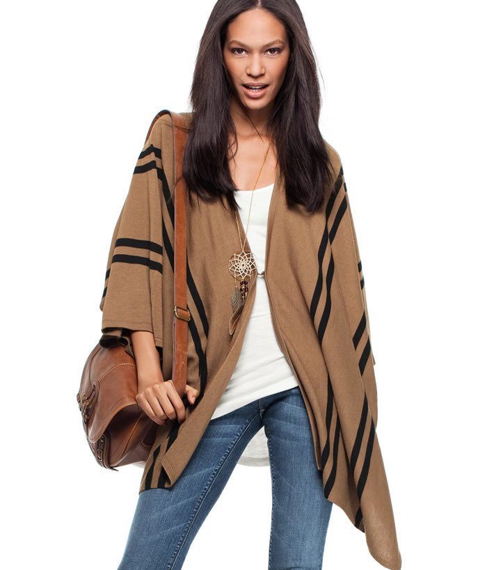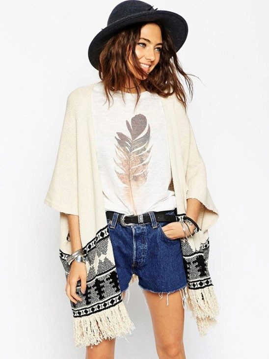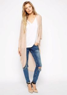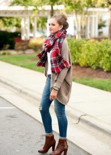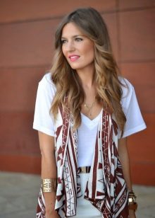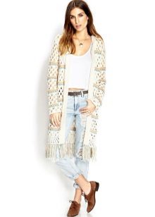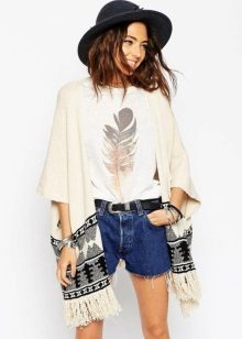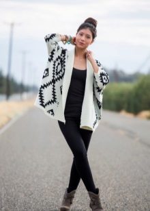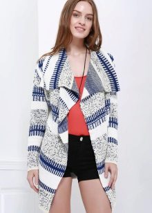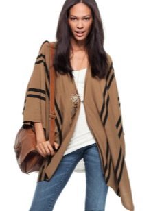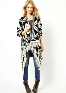 Spacious elongated cardigans similar to ponchos - the hit of the current season. Particularly stylish look models with ethnic prints that fit perfectly into the actual style of boho. True, they are only suitable for slender girls, because they visually add volume to the silhouette.
