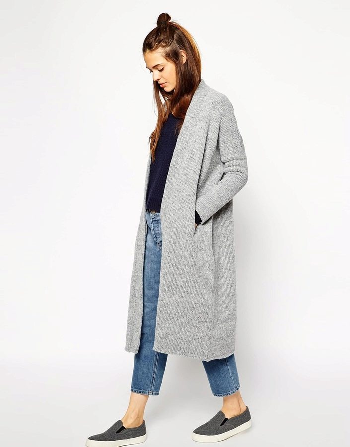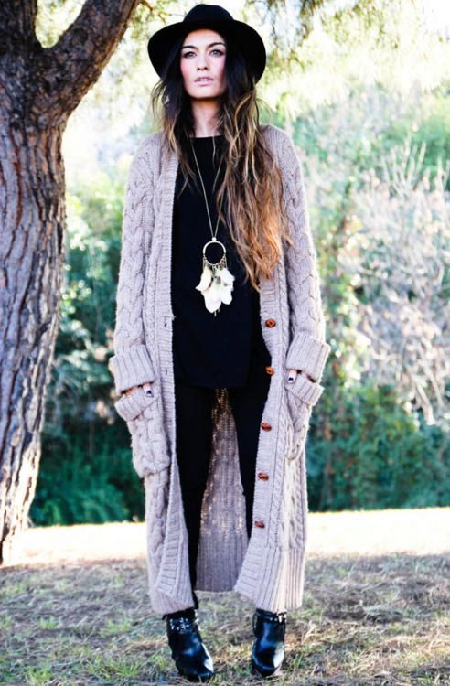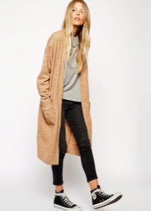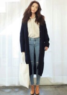 Cardigans in the floor, more like a coat, are now at the peak of popularity. They are comfortable, cozy and stylish, so they simply have to be in the wardrobe of every fashionable woman who respects herself.
