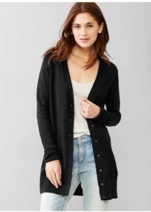 The traditional cardigan looks like a sweater made of fine knitwear. Usually he has a number of small buttons and a V-shaped notch. It is ideal for adherents of the classics and business images..