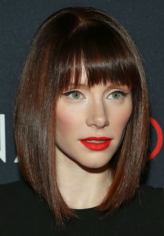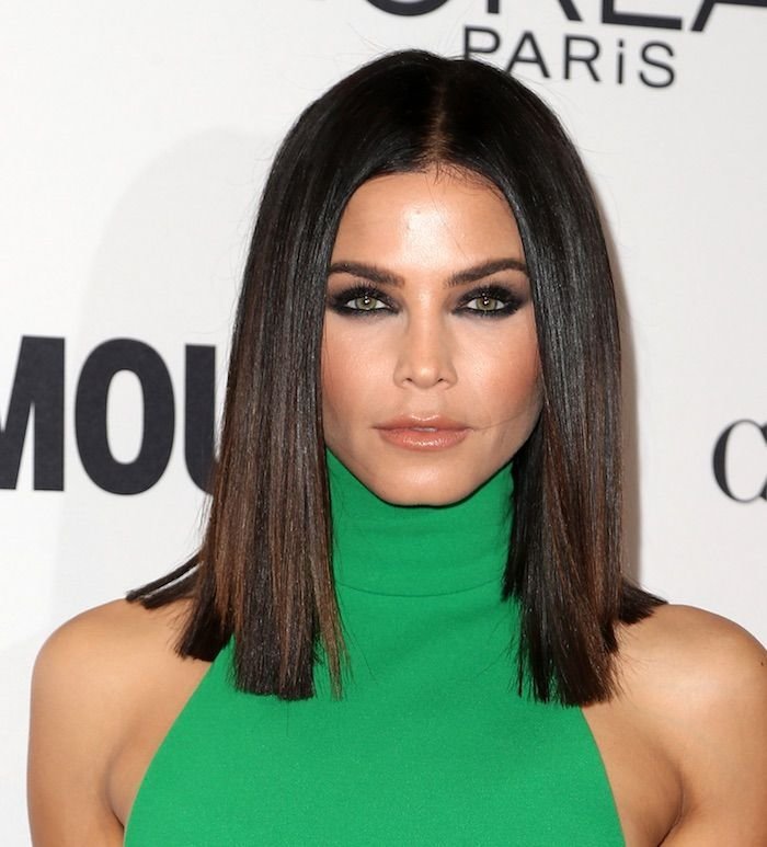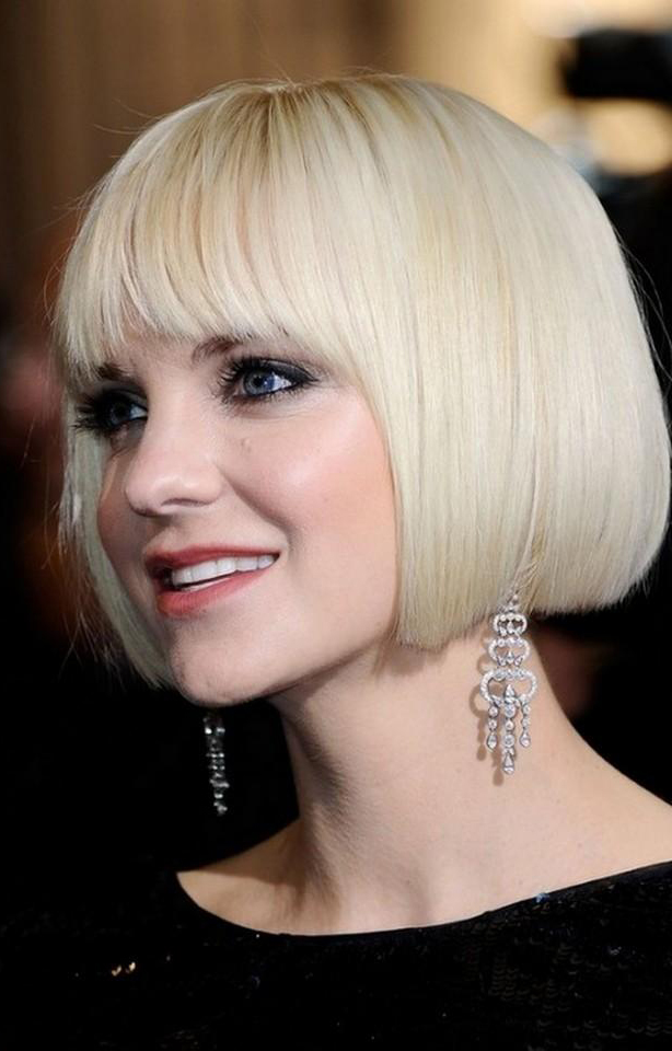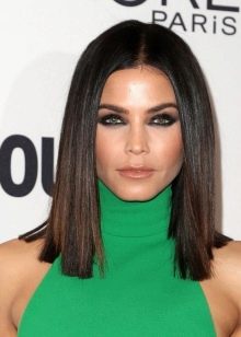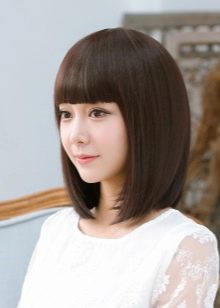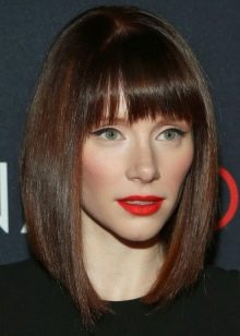 An elongated bob with thick straight bangs can be safely attributed to anti-aging haircuts. Such a bang magically reverses time, making the face more youthful, toned and fresh. Surely the shape of such a car should be monitored and periodically adjusted. In addition, the hairstyle requires perfect styling, any loose strand here negates all efforts to create a perfect image.