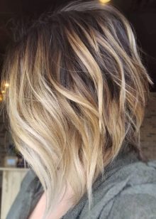 Balayazh is one of the most fashionable methods of dyeing in recent years, which recreates the effect of hair that has burned out in the hot sun. Especially effectively they look on the car, in this case, the color highlights mix with the natural tone and seem to shimmer in the sun. This color visually increases the volume on the head, and the curls at the same time shimmer in several different, but at the same time slightly similar shades. Very effectively balayazh looks at the square, made with a slight lengthening. When coloring in a similar design, the master produces spotting movements, applying a coloring composition.