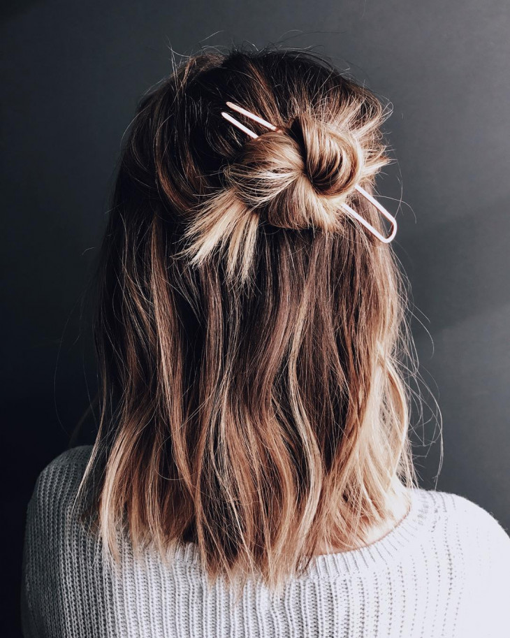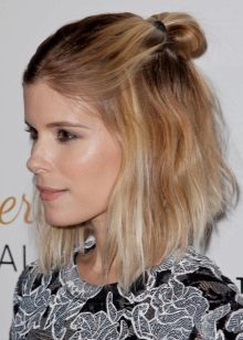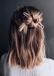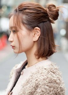 Medium hair is a very versatile option that creates the perfect base for a wide variety of hairstyles. One of the most fashionable trends in recent years is laying with bunches. For example, you can make a bunch Malvinka. This image will be in harmony with the style of casual, which is so relevant in the current season.