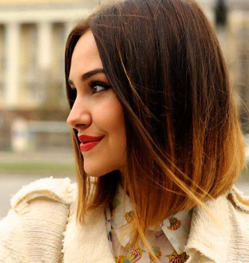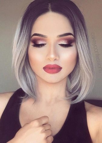 Ombre is probably one of the most spectacular techniques. Usually perform the gradient from dark to light. Girls who like to stand out in a crowd use brighter tones, such as fiery red, purple, lilac or dark blue. Of course, with a short car, the transitions will not be very noticeable, but on an average elongated version, the coloring looks perfect. For owners of a short bean, it is better not to dye the hair completely, but only the necessary transitions on the top of the head.