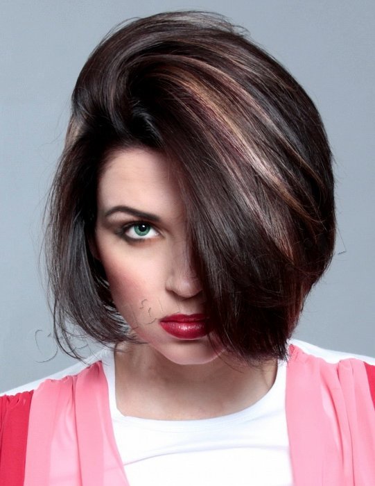 A popular trend of this year is the surprised bob with side parting and sleek contours. If the haircut is done correctly, then it will keep the necessary shape well and look harmoniously on the owner of the hair of various types.