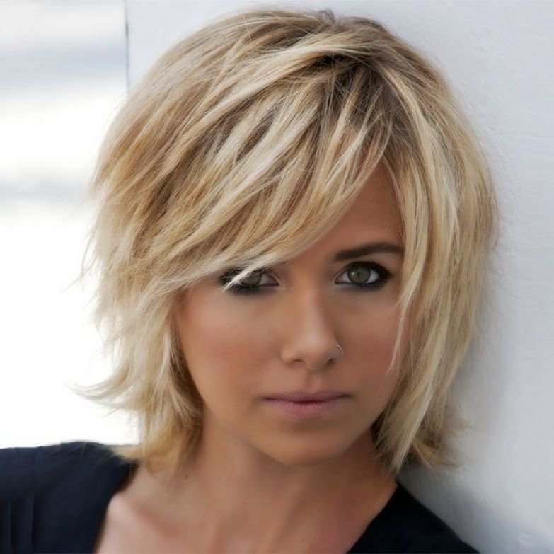 - If you want a gentle look, then you should choose an elongated four-sided with medium bangs on the side of the color of a blond blond. That was the image of young Hollywood stars in the early 2000s, which has remained popular now.