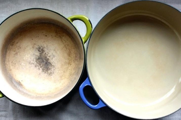 Use coarse brushes or abrasives, as well as corrosive acids can not. Therefore, the process of cleaning the enameled pan is very difficult.