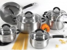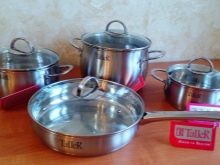 Among the advantages, consumers note concise forms, good thought-out details, with an undoubted sense of proportion. Products are quite light, despite the thick bottom, have comfortable handles. The presence in the assortment of glass, heat-resistant lids makes it possible to monitor the preparation of food. On the inside of the pans marked marks the displacement, which eliminates the need for measuring containers.The creators of kitchen utensils have directed their efforts and interest to ensure that the products in the pots and pans are prepared for a short time. Preference for this model is given by supporters of traditions and real quality.