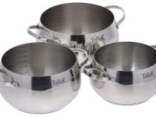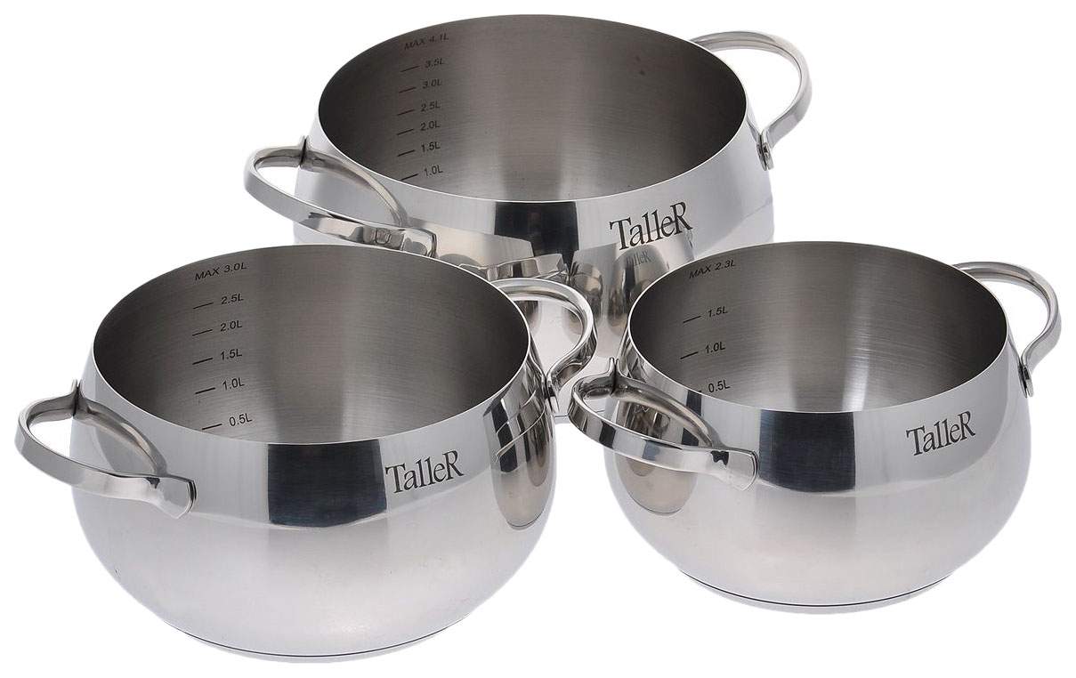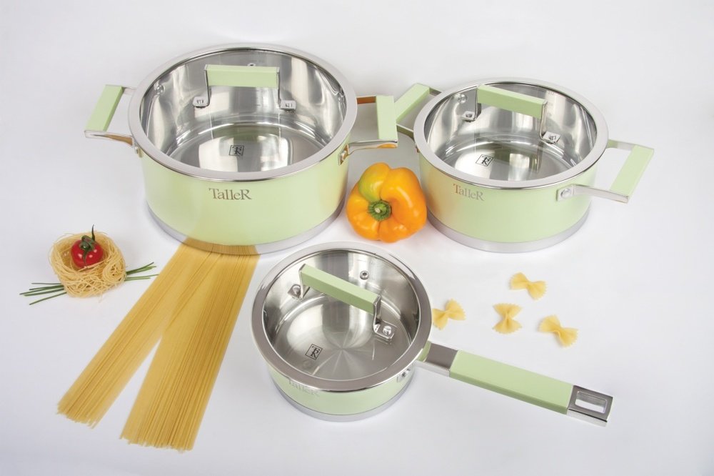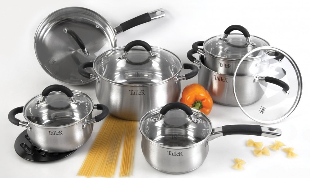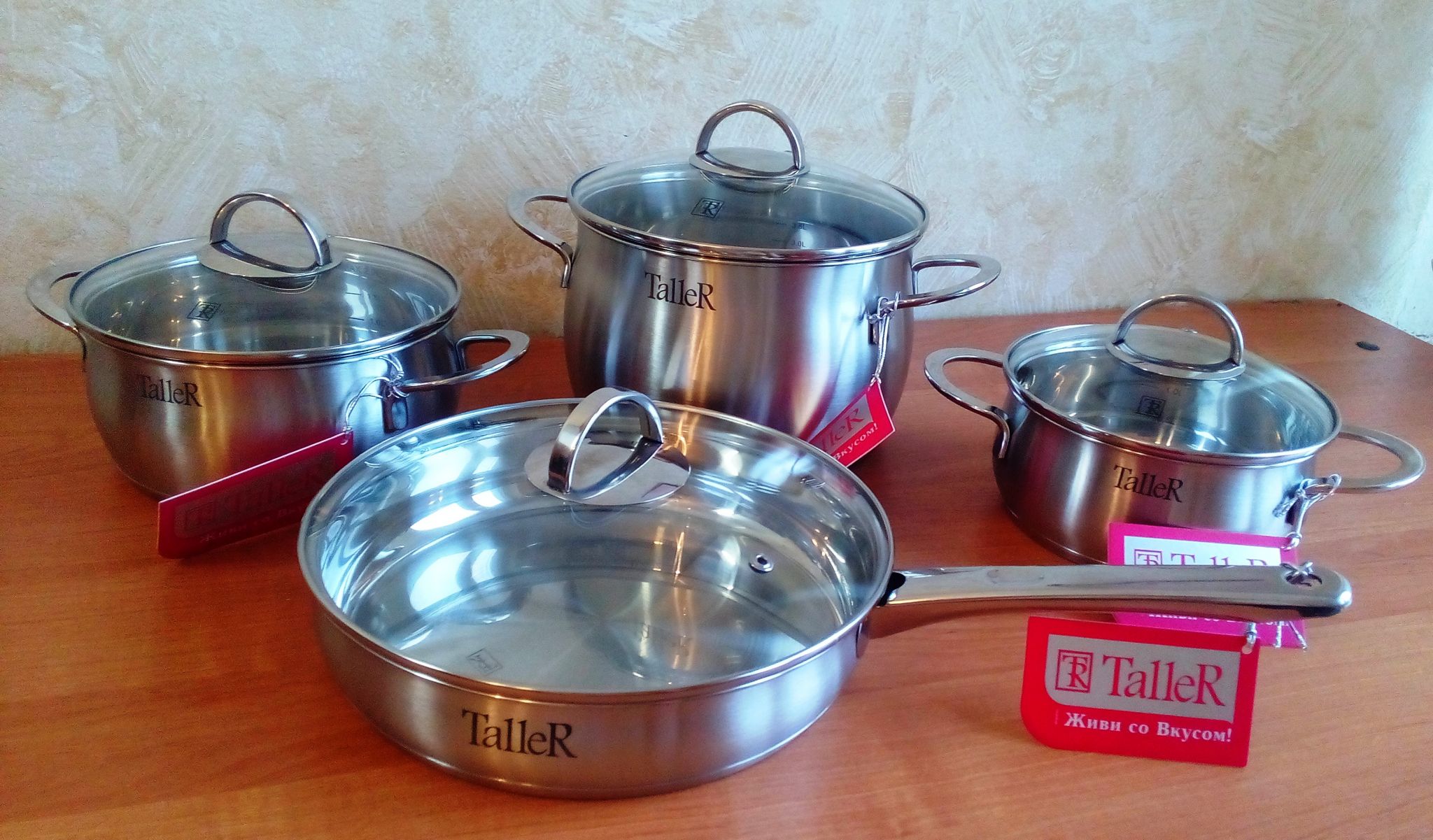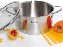For a long time in the consumer market, the described brand has manufactured and sold a large amount of kitchen products. You can buy different types of pans, all kinds of products for baking in the oven, tableware, juicers, accessories needed for cooking food for a couple, and everything you need for serving the table and storing food. They consider it very convenient to purchase complete sets of dishes, for example, it is more profitable to buy several pans of different sizes and purpose at once.Alternatively, you can choose sets in which the kit includes not only TalleR pots of different capacity and volume, but also a pan, woks, silicone molds and accessories.