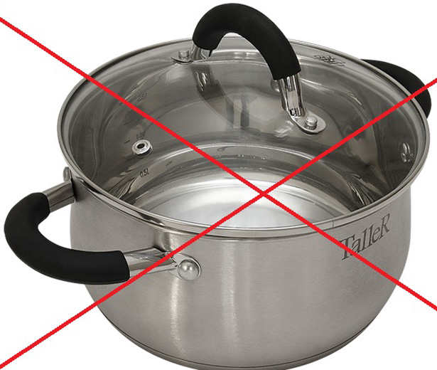 TalleR pots can be used on all types of hobs, because they are made from a wide variety of materials. Aluminum and ceramic products are not used on glass-ceramic surfaces. They are allowed to use, according to the instructions, on gas stoves. At the same time, it is necessary to monitor the flame so that it is moderate and the flames do not fall on the walls of the dish. Cast iron kitchen utensils are considered multifunctional. Although its operation on electric stoves is dangerous, but not for pans, but for the surface of the plate itself, due to the gravity of the material. But the dishes made of stainless steel can be operated on all types of plates, not excluding induction surfaces.