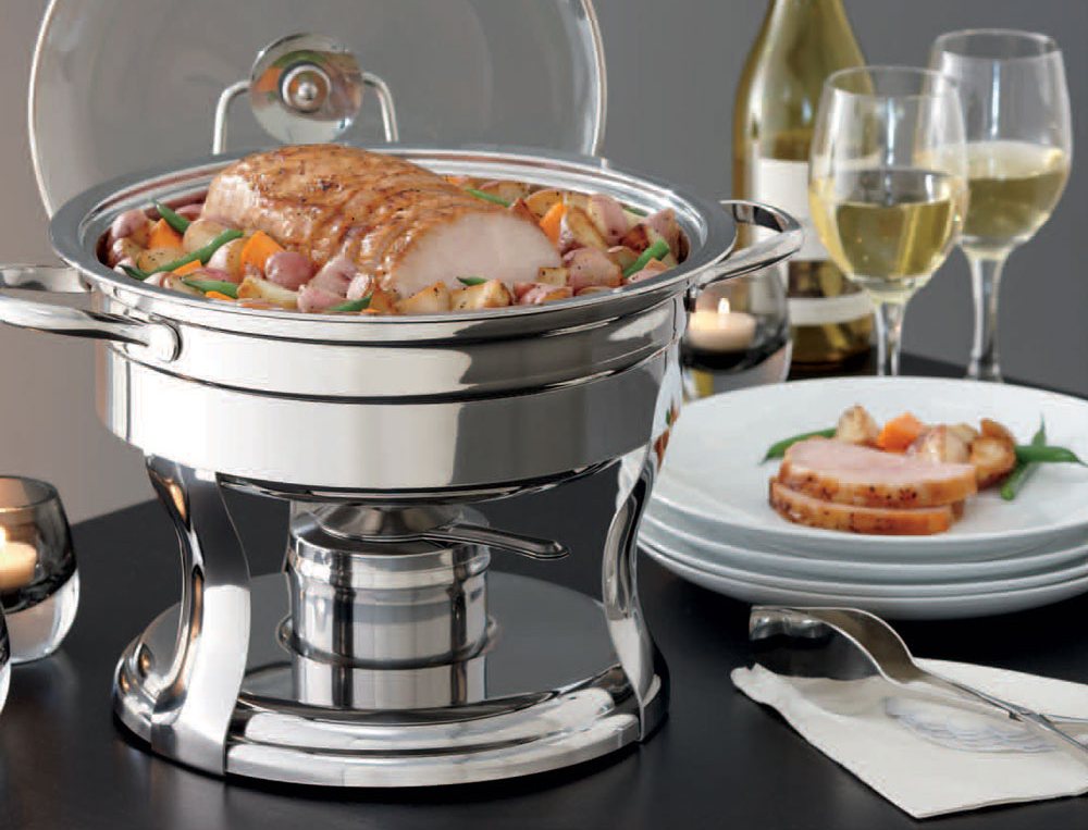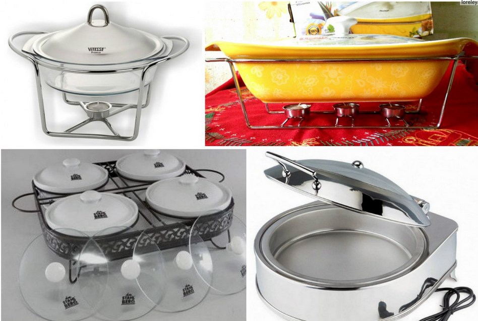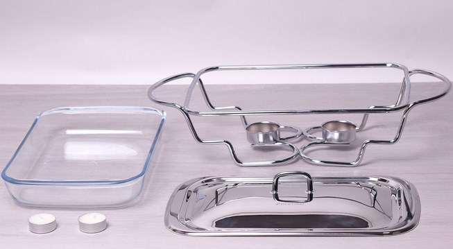 The most easy-to-use serving tabletop models are heated by candles (or alcohol stoves). The candles are set on fire and the food warmer is put on the table, which allows not to use additional serving plates.