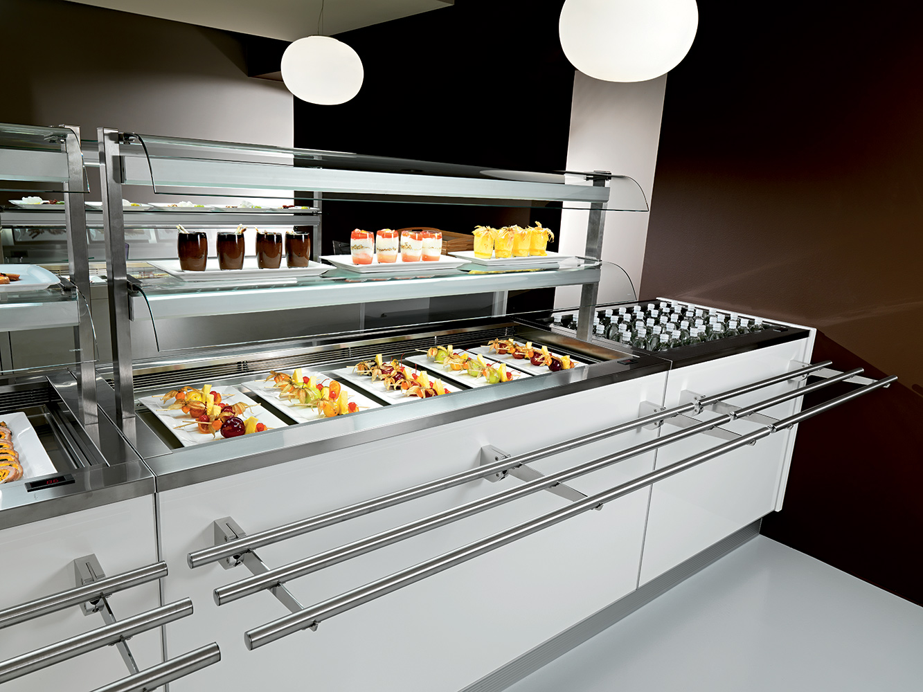 This type of Bain-marie is designed and used mainly in institutions catering. These devices have large dimensions, consist of several food segments and modules. Since they are placed on the floor, they have very good stability. Floor structures are often made in the form of shop windows with numerous sections.