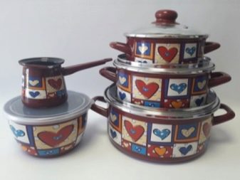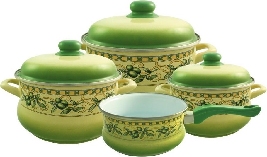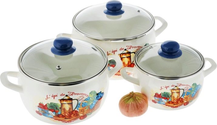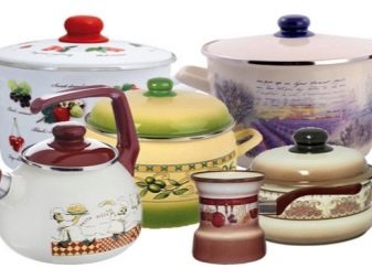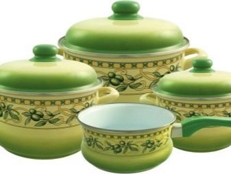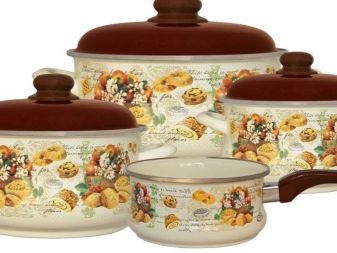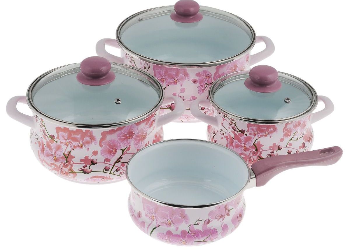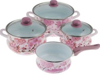You will not want to hide a beautiful saucepan in kitchen cabinets; it can become a decoration and addition to the interior. Very popular series: "Olive", "Glade", "Bouquet", "Eden", "Sakura", "Lavender" - a white or bright base and interesting compositions of flowers, fruits, birds are drawn very high quality and delight the eye.