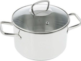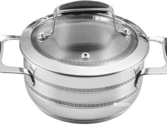- the lid can also be both metal and glass with a bakelite handle - the glass is a little more difficult to clean, since dirt can accumulate along the stainless steel rim; the glass lid is heavier, and thanks to the transparency of the glass, you can visually track the process of boiling and cooking, although the glass may sweat; On the glass lid they often place a hole for bleeding off steam, though, sometimes this design does not justify itself: the lid still has to be opened a little;