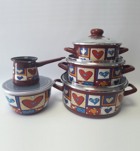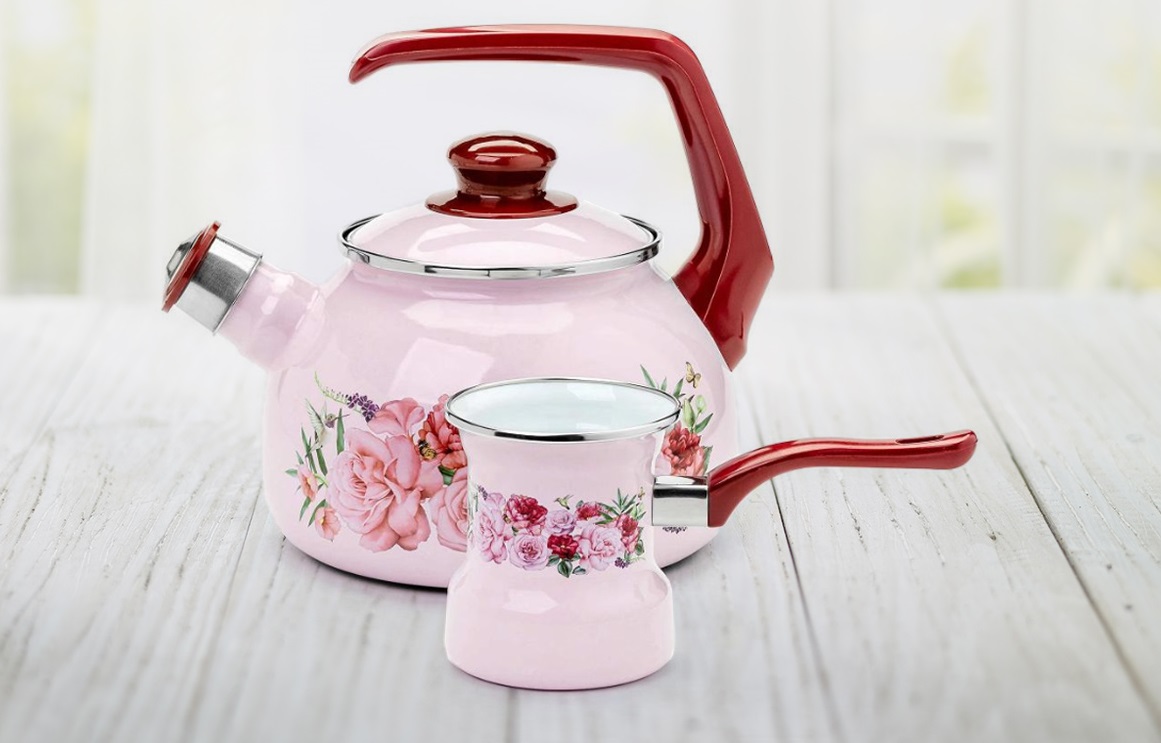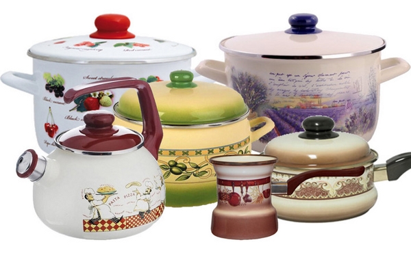 In Russia, enameled pans and Metrot sets are the most well-known and widespread. On the premises of the enterprise, the full cycle of production of such dishes is carried out: the creation of design, preparation and molding of the base, enameling, production of accessories, painting and drawing drawing, packaging.