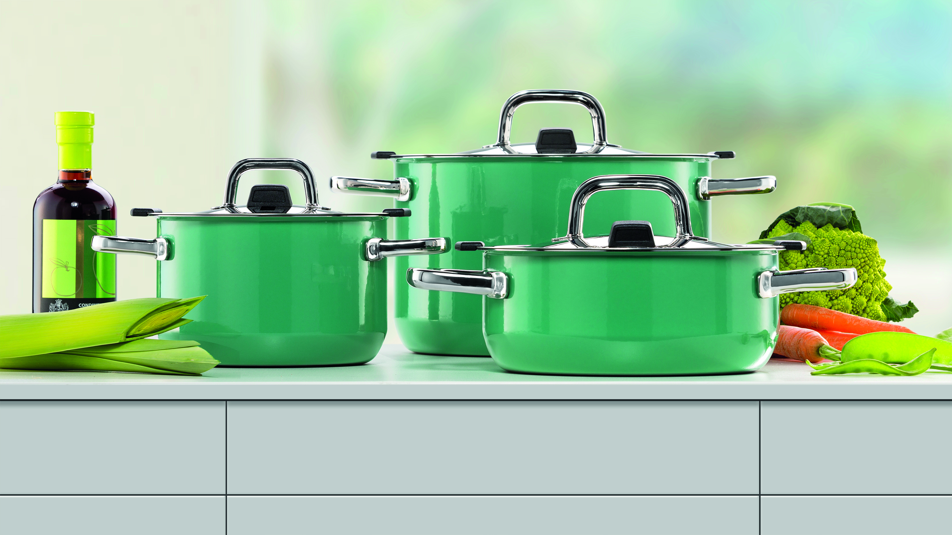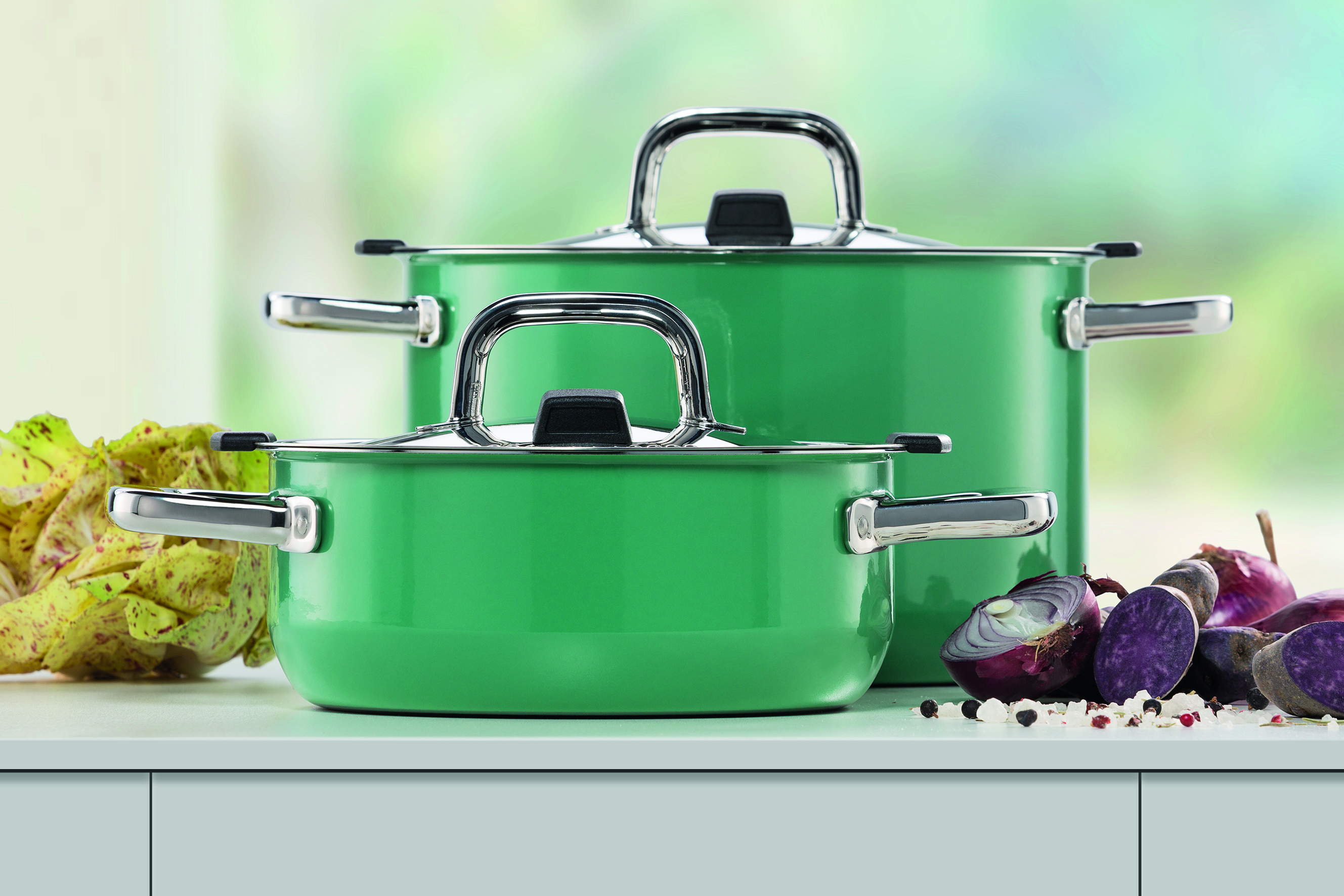 - The pots are made of the highest quality 18/10 stainless steel coated with two ceramic layers. The strength of dishes and high resistance to damage are determined by the hardness of the raw materials used and sprayed using silver ions using plasma technology.