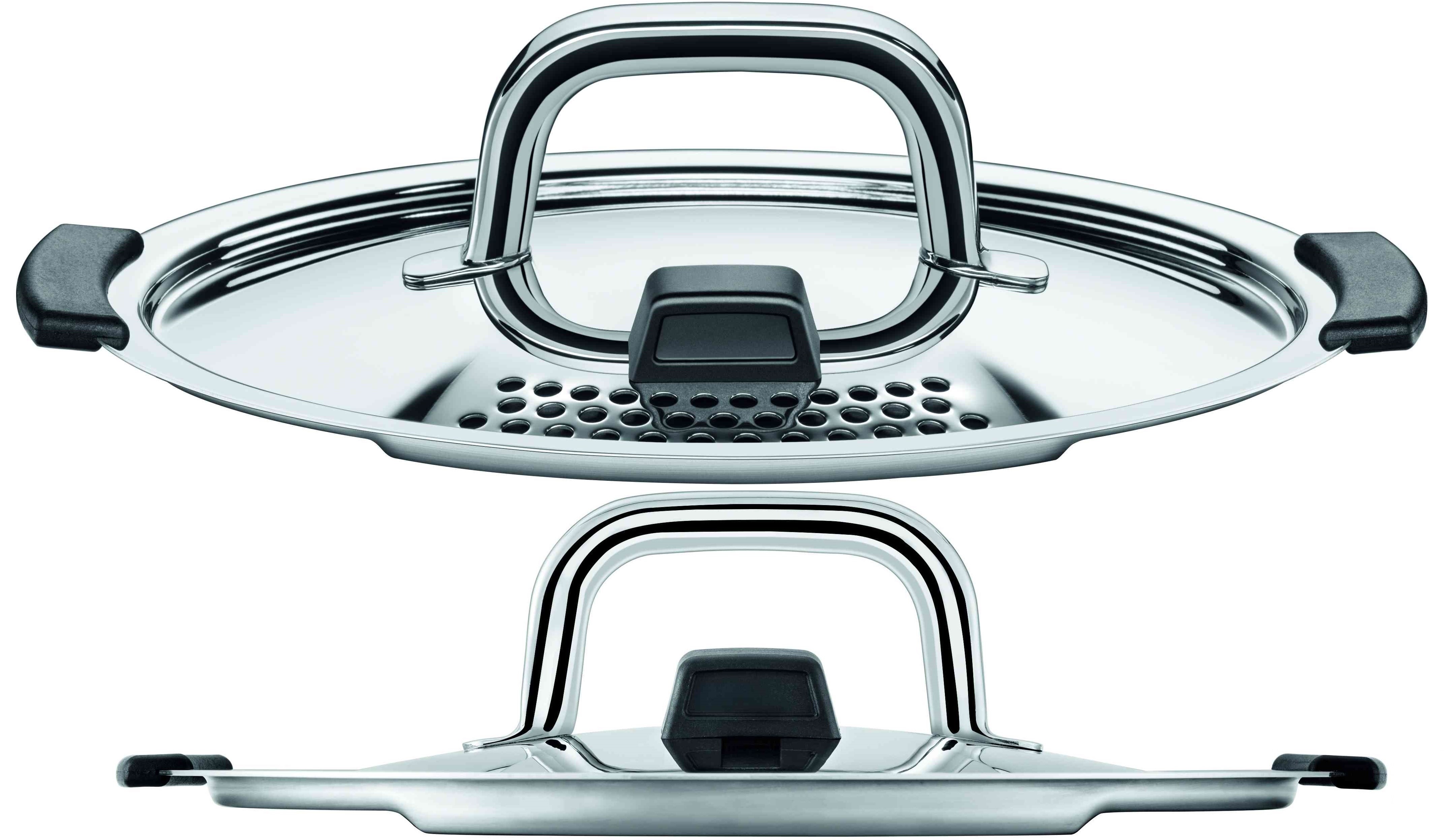 - Details. Buy pots immediately with a lid, it is desirable that she had a special hole for steam, so the food is better prepared. A big plus is the presence of handles with silicone or rubber inserts, which prevents the possibility of burns. Assess the look of dishes and think about how well it will fit into the interior of the kitchen.