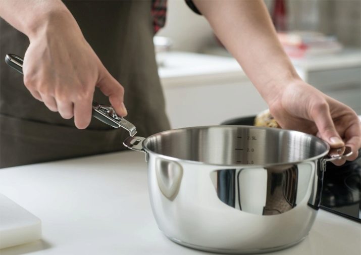 In the recent past it was decided to make handles directly with the body. Currently, such dishes are becoming less and less. It is understandable, because this technology requires the use of strong materials, which, in turn, have a large mass. And as you know, a large mass of pans or pots will indirectly counteract the process of cooking and especially washing by hand.