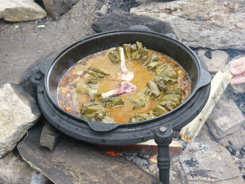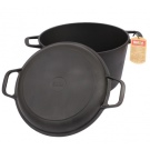 Tatar cauldron is more suitable for lovers of outdoor recreation. You can cook fragrant soups, pilaf or aza on the fire, which will have a stunning taste. Tourist bowler is presented in two variations: 6 and 8 liters. Product weight 5.5 and 6.7 kg. The bottom of the product has a thickness of 4 mm, and the thickness of the walls of the cauldron is 3.5 mm. The vessel has the correct shape, which is necessary for cooking on the fire, as well as on the kitchen gas and electric stove or in the oven. In the cauldron there is a convenient arc, the tank is equipped with a cast-iron lid.