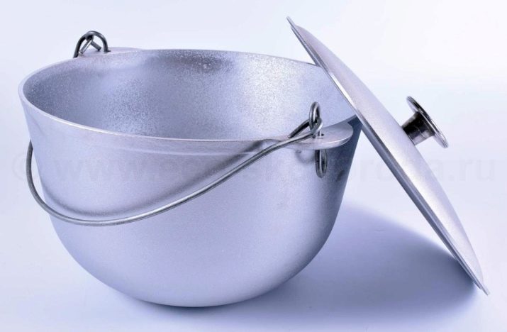 The aluminum cast cauldron may have two or four handles as well as a lid. The volume of such a cauldron can vary from 2 to 70 liters. Pot weight: from 700 grams to 10 kg. The company also offers a cauldron marching with a handle and a handle. It is made of high-quality aluminum without the content of harmful impurities. Its size can be 4 or more liters. A special tripod from this manufacturer will become an excellent companion to the camp cauldron.