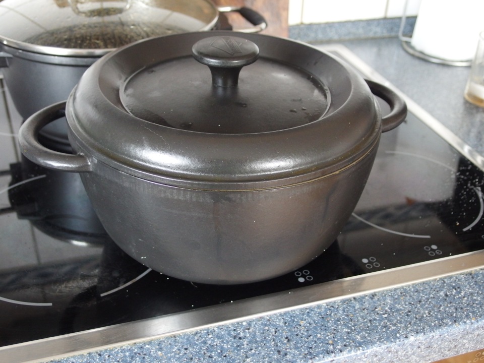 For cooking on a glass-ceramic plate, it is necessary to choose not too massive products, since excessive weight of cast iron and ingredients can damage the surface of the plate, as well as careless use of cast-iron products.