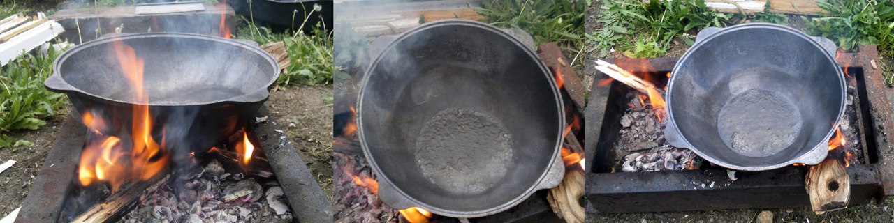 If we briefly describe the procedure for preparing a cast iron cauldron, it consists of several steps. The calcination methods themselves will be discussed in more detail below.